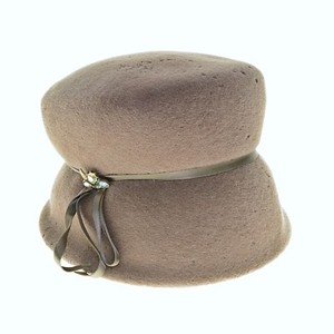 Vintage Hut 60er Jahre Mauve Pfirsichblüte Velour hoher Hut braun Band & Pin mit Box