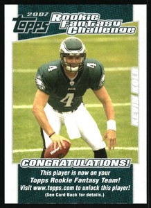 2007 Topps #15 Kevin Kolb Rookie Fantasy Challenge Philadelphia Eagles
