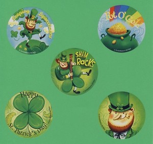15 St. Patrick's Day Assorted Large Stickers - Party Favor- Leprechaun, Shamrock