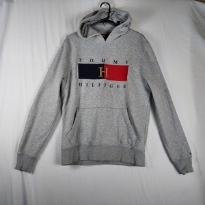 Tommy Hilfiger Hoodie Herren M grau Pullover Sweatshirt Flagge Logo Freizeit