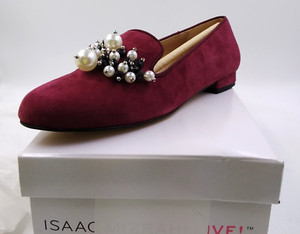 Isaac Mizrahi Live flache Damen-Wildlederschuhe Perlen burgunderrot Größe 8 M RN#81893