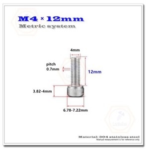 1000pcs M4x12mm 304 Stainless Steel Hex Bolt Socket Cap Screws Head DIN912