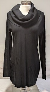 INC International Concepts Pulloverkleid schwarz Wasserfallausschnitt Kunstleder Streifen XL