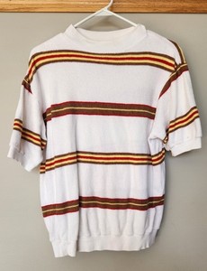 Vintage Topps Hemd gekämmte Baumwolle Frottee gestreift weiß groß 70er 80er