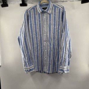 Bugatchi Uomo blau gestreiftes Langarm Button Down Herrenhemd Größe L