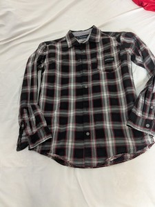 Calvin Klein Langarm kariertes Hemd mit Knopfleiste schwarz grau rot Größe 14/16 Jungen