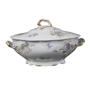 Limoges 12" x 8" weiß lila bunt Porzellan Blumen Frankreich bedeckt Servierer