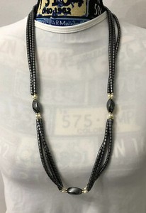 Dreifacher Strang Hämatit Stein Halskette Kunstperlen & goldfarbene Abstandshalter Länge 32 Zoll