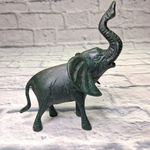 Vintage Bronze Kupfer Elefant Statue Figur Rüssel oben grüne Patina 5 x 5,5"