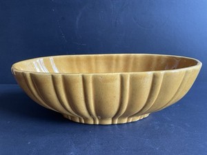 HAEGER Pottery 3938 U.S.A. Brown/ Tan RIBBED OVAL Footed Bowl Planter vintage