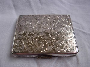 VINTAGE GEÄTZTE MASSIVE SILBER PULVERDOSE, 1950er Jahre.