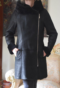 DOLCE&GABBANA Runway schwarz, Lammfellkragen, eleganter Strickmantel/Jacke IT 42, S-M CHF 994,58CHF 1.808,33