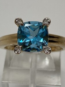 Massiver 10K Weißgold natürlicher Schweizer Blautopas und Diamant Heiligenschein Anhänger und Kette CHF 240,40