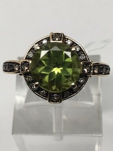 14K Gelbgold Rundschliff Peridot und Rauchquarz Akzent Ring Größe 7,25 Neu
