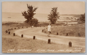 Postkarte RPPC Mädchen zu Fuß Lake Missaukee State Park Lake City Michigan 1940