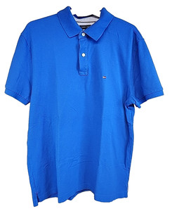 Tommy Hilfiger Custom Fit Polo Kurzarm Hemd Herren LARGE - Blau