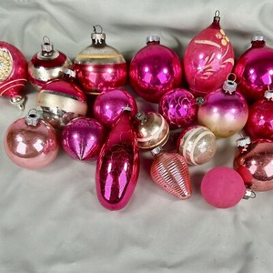 20 antike glänzende Brite Germany polnische Quecksilber Glas rosa Ornament Lot