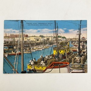 Postcard Fisherman's Wharf Fishing Fleet Unposted Linen
