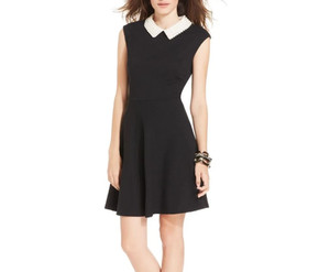 Betsey Johnson Etuikleid Perlenkragen ärmellos Größe 10 Damen schwarz Strick
