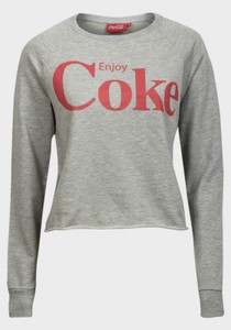 Damen grau bauchfreies Oberteil Coke Logo lockere Passform Sweatshirt Fitnessstudio Coca Cola NEU kostenloser Versand + Verpackung CHF 10,67