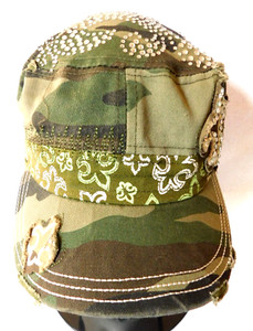 Nexgen Camouflage Fleur-de-Lis Distressed Mütze Kunstrauten Nieten verstellbar Baumwolle Kappe CHF 19,80