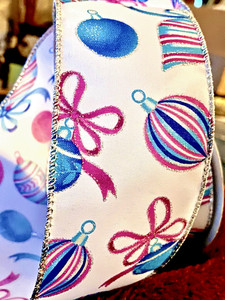 Weihnachtsschmuck 2,5" mal 2 Yard verdrahtetes Band blau türkis rosa Glitzer Highlights