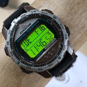 Vintage Timex Expedition Herren Field schwarz Nylon Quarz Digital 41mm Uhr 7 1/4"