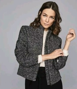 Reiss Suri strukturierte Boucle Reißverschluss Jacke-Größe 12