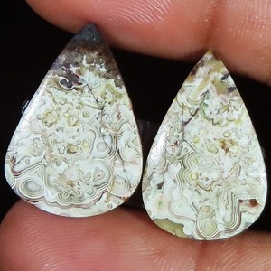 24,25 kt natürlicher verrückter Spitzenachat Paar Birne Cabochon Edelstein 16 x 23 x 4 mm KL183