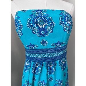 Boho Trägerloses Maxikleid Blau Türkis Blumenmuster Sommer Freizeit