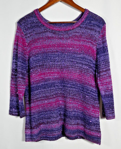 Choices Damen Strickpullover gestreift Pailletten offen Größe L lila Artsy Glam Büro