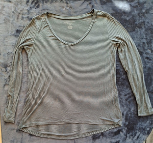 American Eagle Langarmshirt V-Ausschnitt grün gestreift, Größe Medium