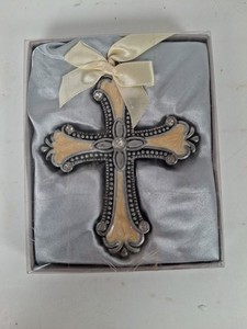 Christliches Kreuz Harz Ornament mit Box Neu im Karton 4"L Ostern oder Weihnachten