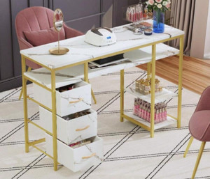 Maniküretisch Nail Tech Schreibtisch mit Marmorierung Oberfläche 3 Schubladen offene Regale Salon CHF 105,98 bis CHF 107,98