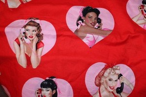One Yard Glam Retro PIN UP Girls "Dial L-O-V-E" Red Hearts Alexander Henry 2021