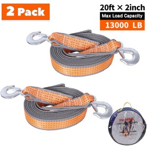 20FT Heavy-Duty Tow Strap with Metal Safety Hooks 13,000LBS Capacity 2 Inches