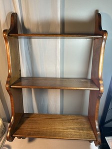 Vintage verziertes Holz Wandvitrine Kurios Schmuck Teller Regal 3 Ebenen gewellt