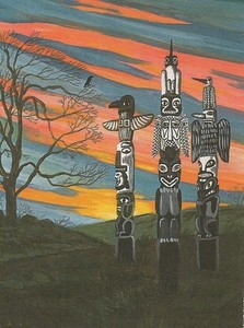 5x7 DRUCK GEMÄLDE RYTA TOTEMPFAHL KRÄHE RABE HALLOWEEN KUNST Heidnische Landschaft