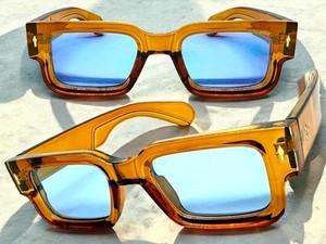 Klassische Vintage Retro Hardcore Biker Gangster SONNENBRILLE braunes Gestell blaue Gläser