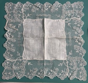 Vintage viktorianisches edwardianisches Baumwolltaschentuch elfenbeinfarben handgefertigt Spitzenkanten Hochzeit CHF 16,17