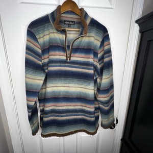 North River Outfitters Damen X Large blau gestreift 1/4 Reißverschluss Fleece Shirt Top XL