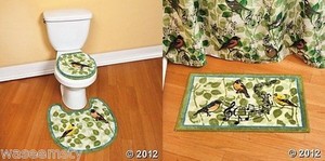 Green Blue Spring Songbird Bird Branch Leaf Bath Toilet Rug Mat Set Decor