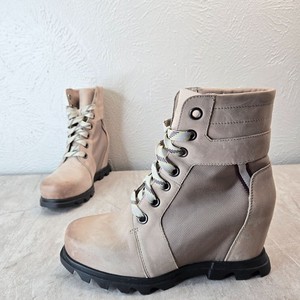Sorel versteckter Keilabsatz Stiefel hellbraun Leder Grunge Schnürung klobige Stiefeletten Größe 9 CHF 47,07