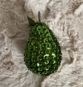 Vintage Obst Birne grün Stecknadel Weihnachtsschmuck Nadelkissen Pailletten