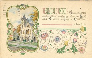 Vintage Grüße Leinen Postkarte Rallye Tag Grow in Grace 2 Peter 3:18