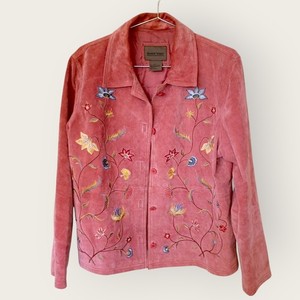 Brandon Thomas Wildleder Leder bestickt Blumen Jacke Mantel Rosa Damen
