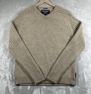 Abercrombie & Fitch Muscle V-Neck Sweater Men’s XL Tan Khaki Ribbed Preppy Y2K