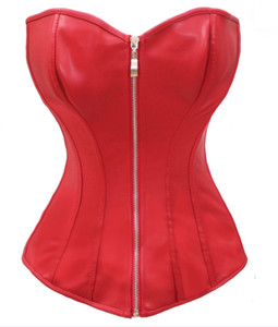 Bslingerie Womens Waist Cincher Faux Leather Corset - Red - Small