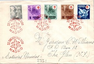 SPANIEN 1950 POSTBRIEF TUBERKULOSEFONDS AUSGABEN ADDR USA SPEZIAL CANC MADRID