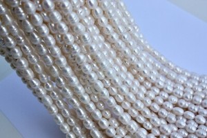 Oval 5-6 mm Natürlich Zuchtperlen Strang Süßwasser Perle Schmuck Kette Halskette